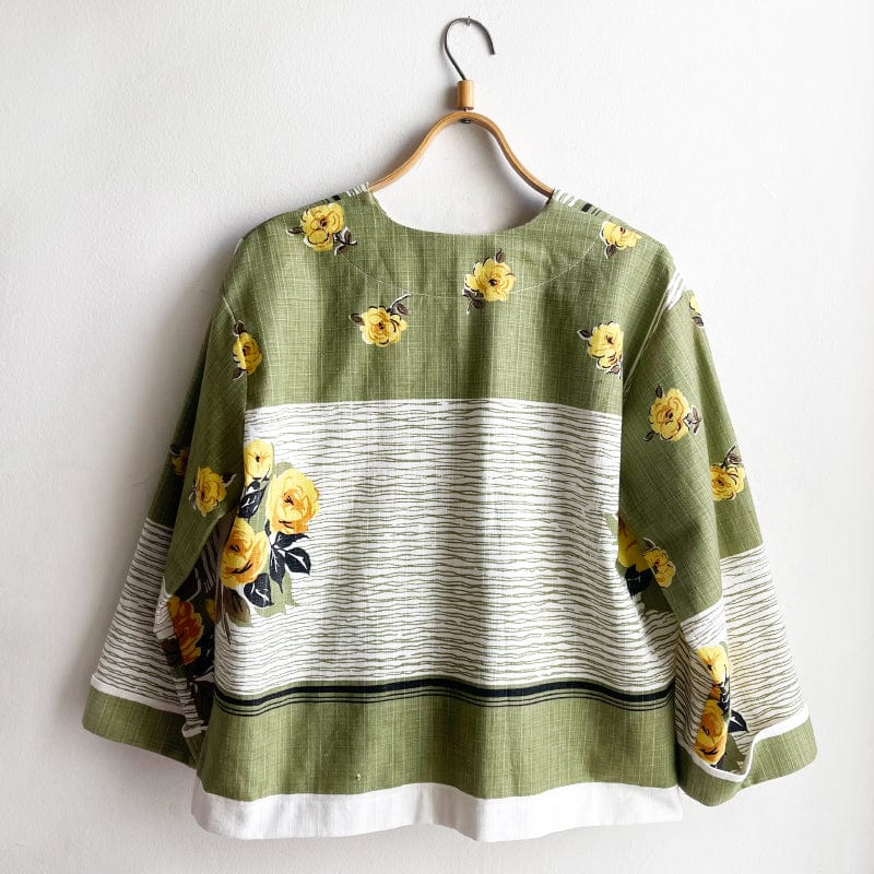 Dragstar Vintage Fabric Boxy Jacket No.3 Sage with Yellow Roses - Medium