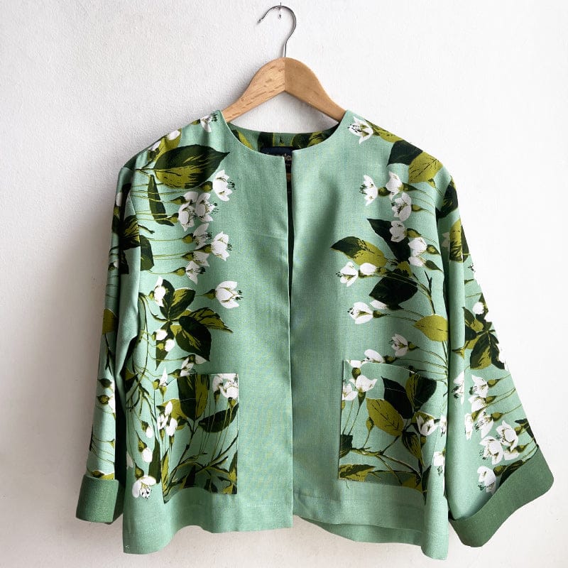 Vintage Fabric Boxy Jacket Medium Sage with Lilies