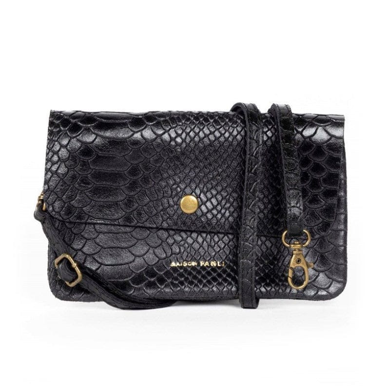 Maison Fanli Leather Crossbody/Clutch Bag - Snake Black