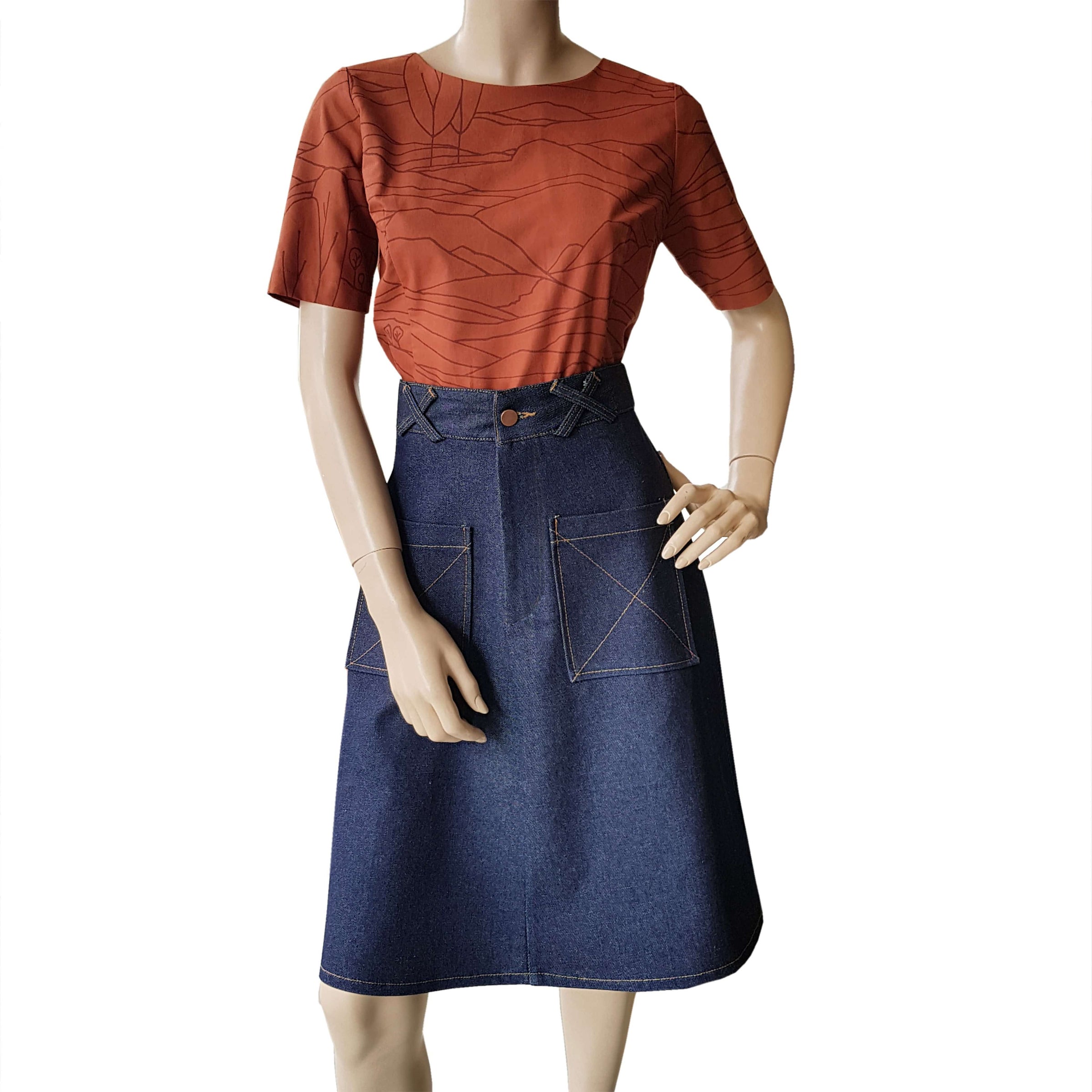 With its cool shade and flattering A-line shape, our best-selling, retro-denim patch pocket skirt has just the right 70's flavour. It's the piece that you'll find yourself reaching for every day of the week, all-year round. From work to play, park to festival, this skirt really rocks, no fine-tuning required.