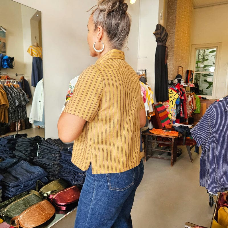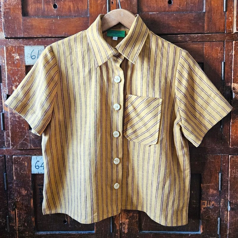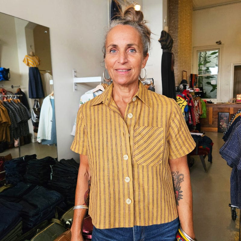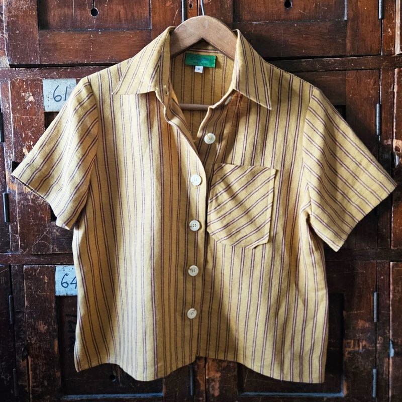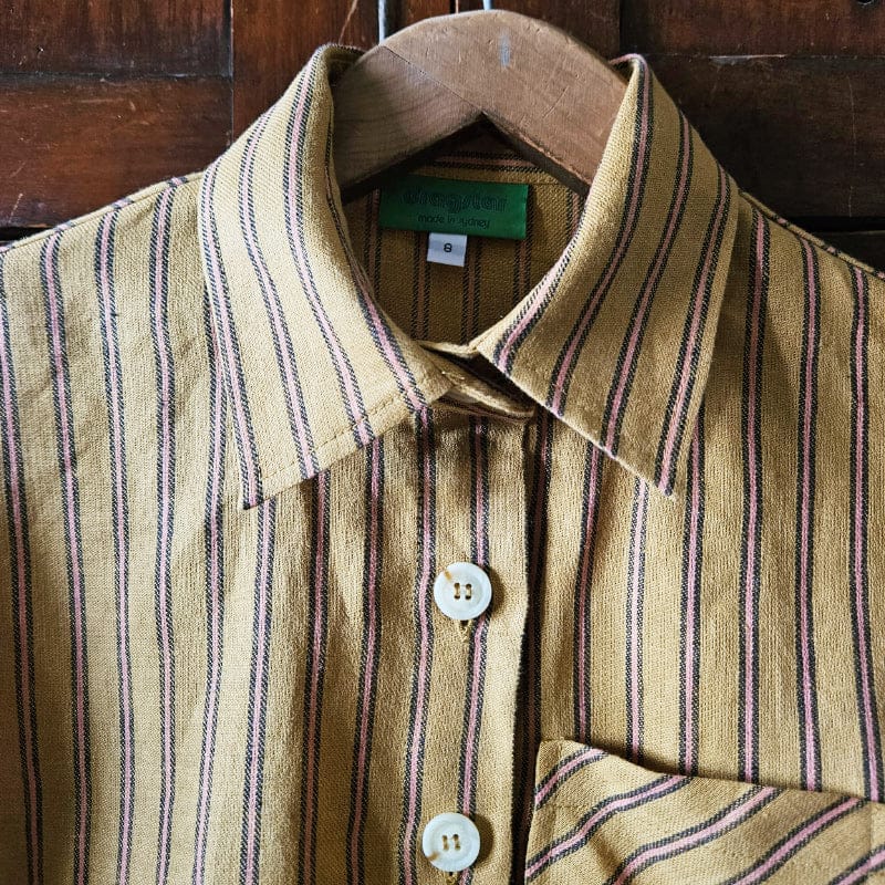 Dragstar Katie Cropped Shirt Caramel Stripe Linen