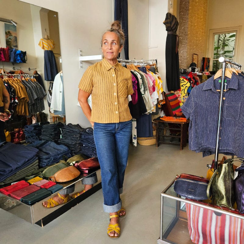 • Slightly cropped , hip length hem, which works perfectley with all our waisted pants and skirts, no need to tuck, but there's enough length to tuck in if you want to.